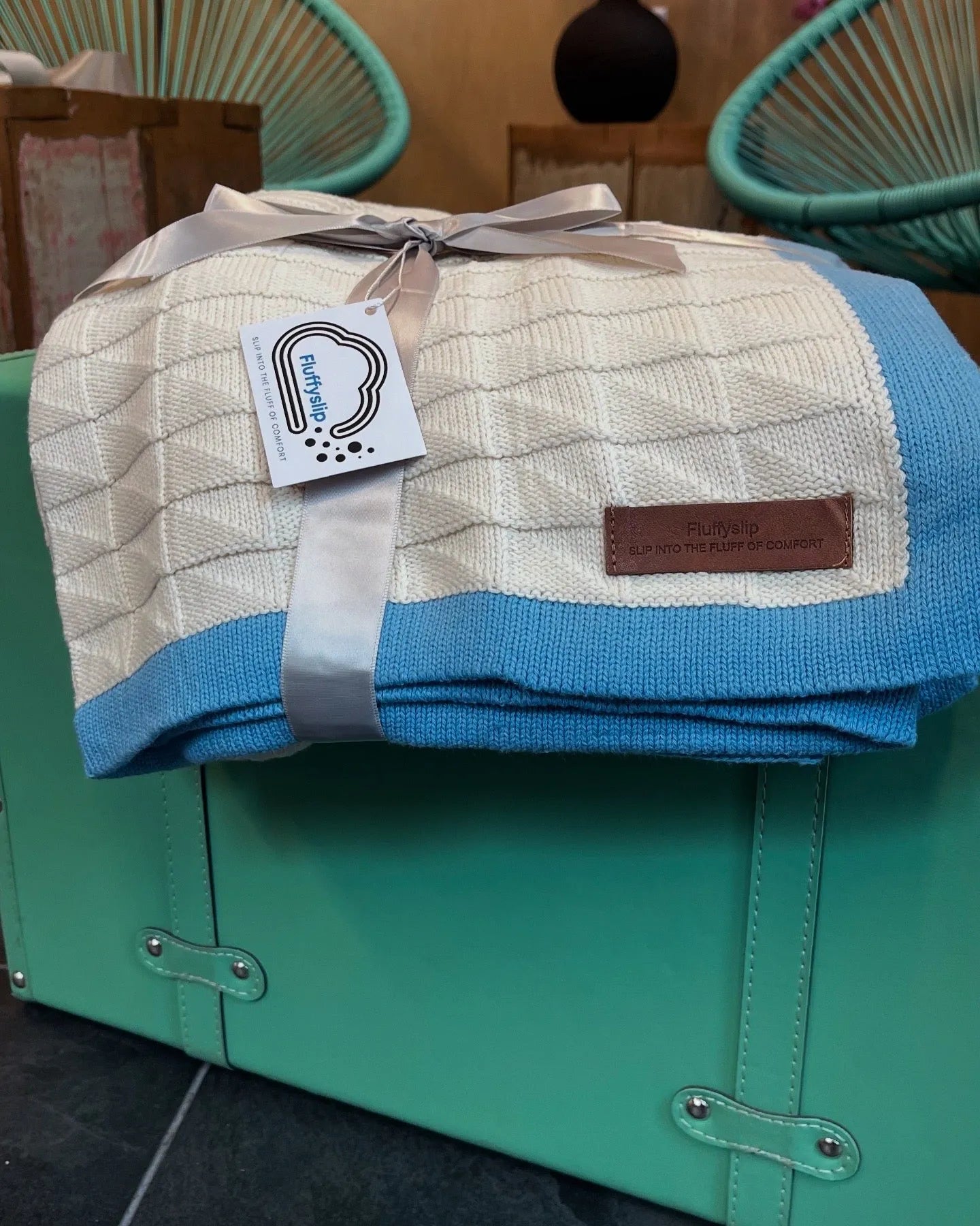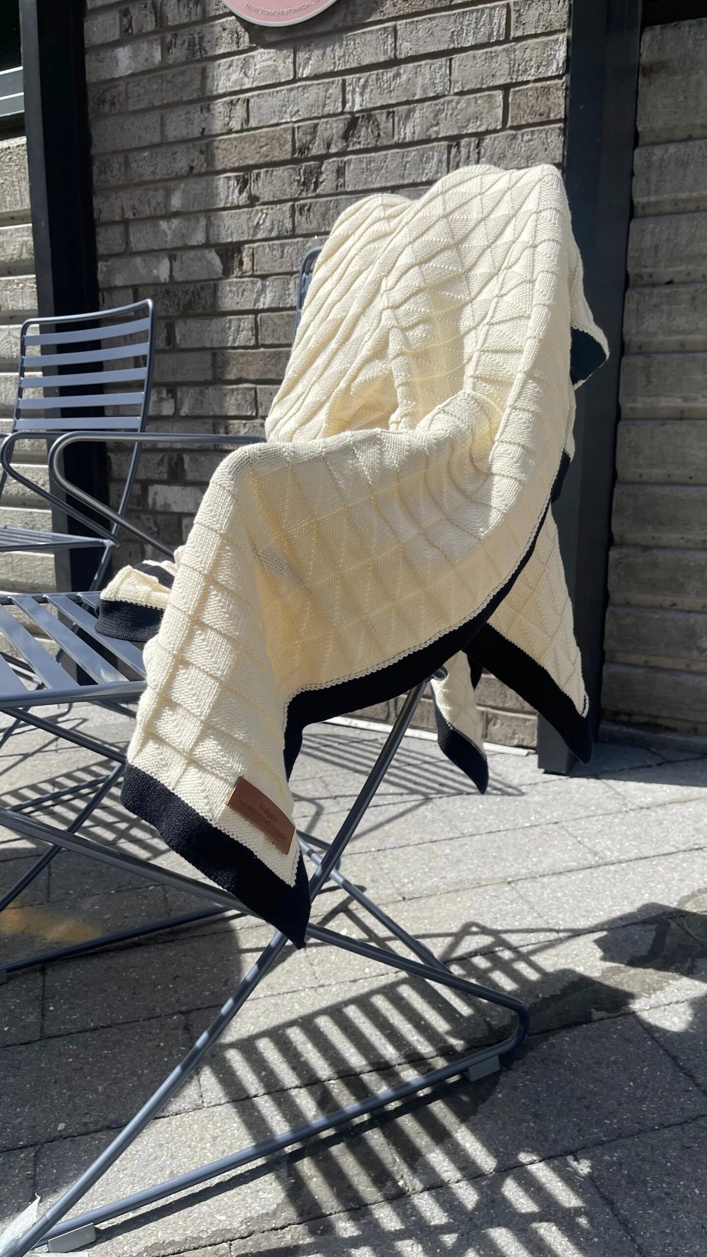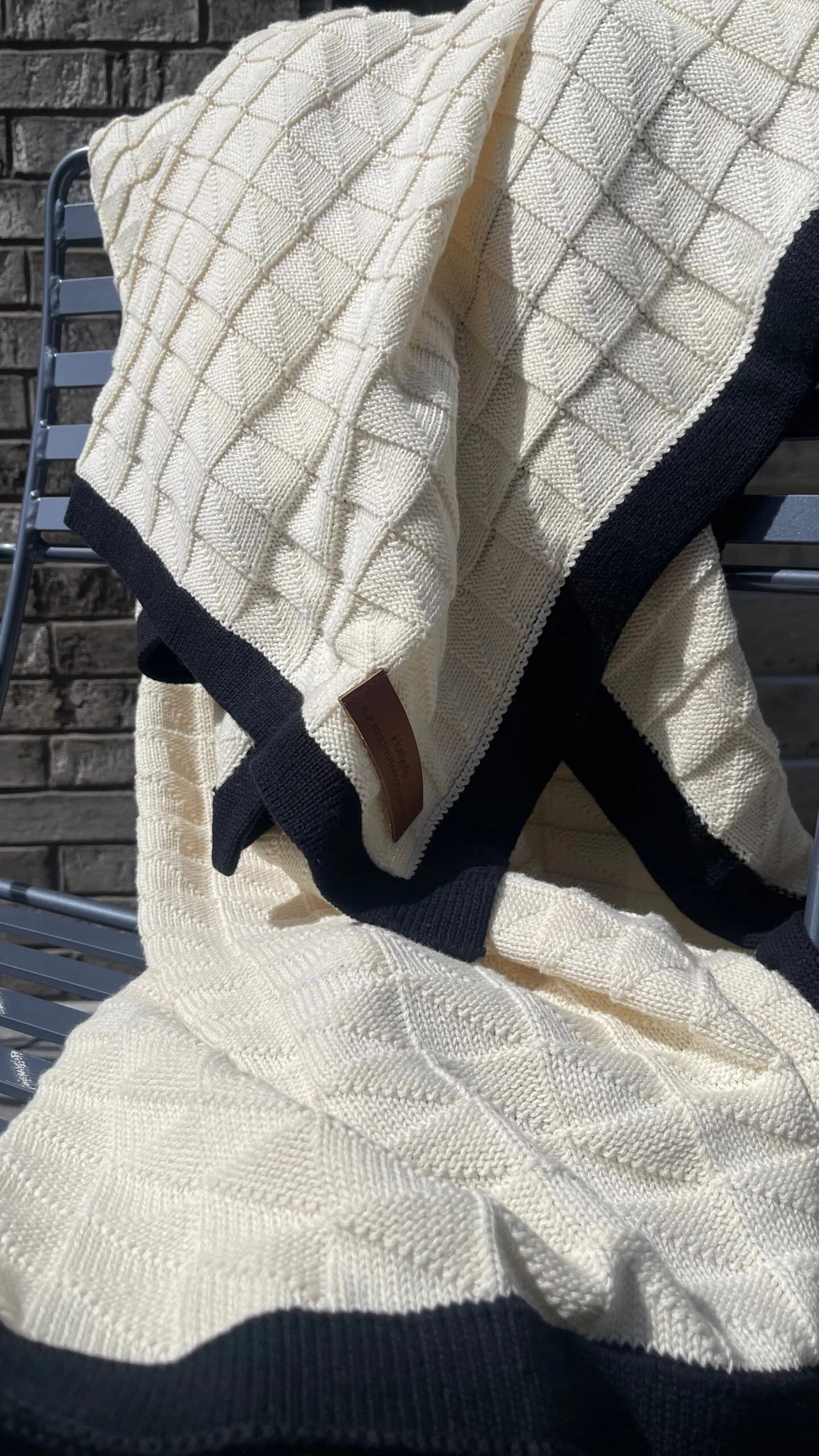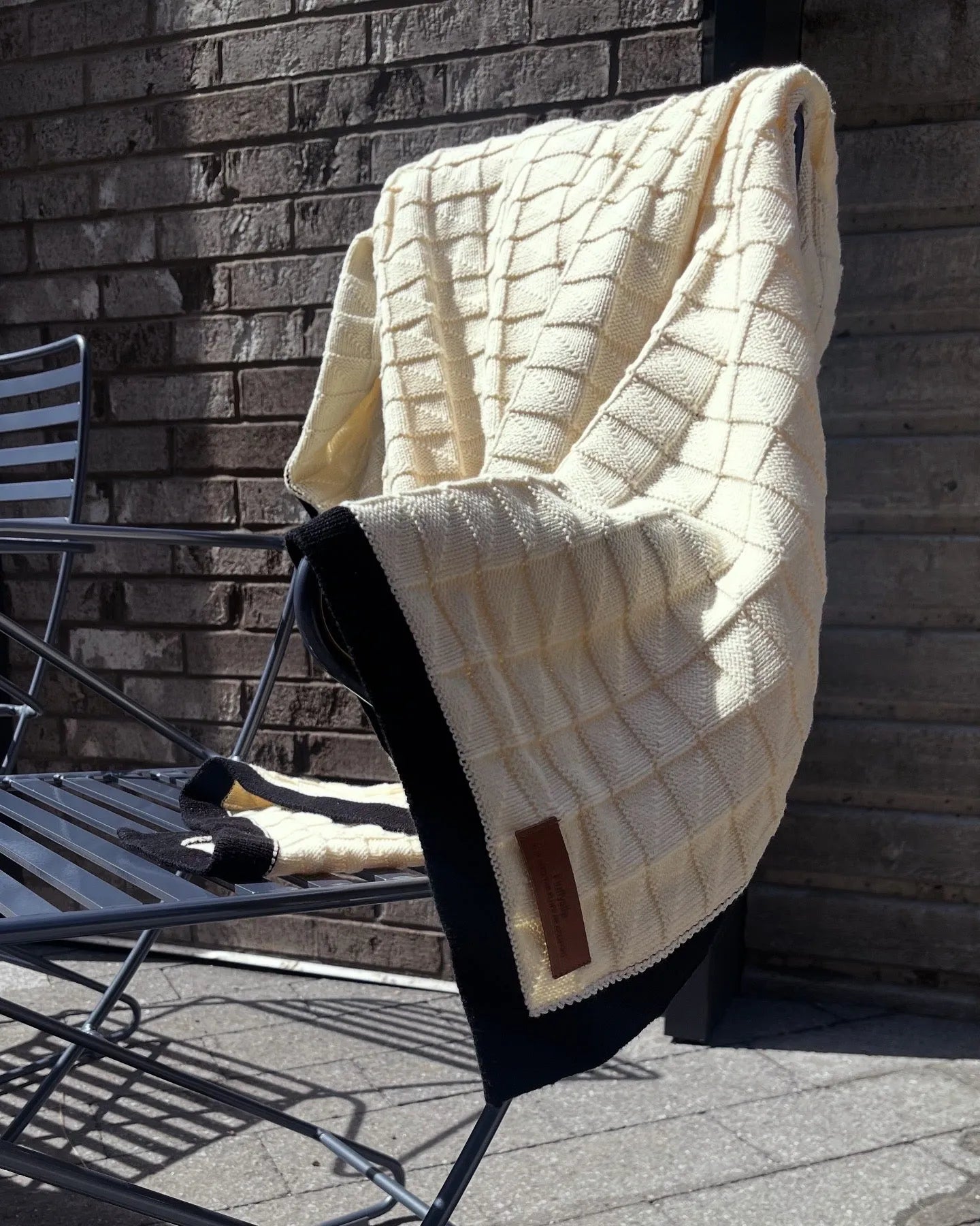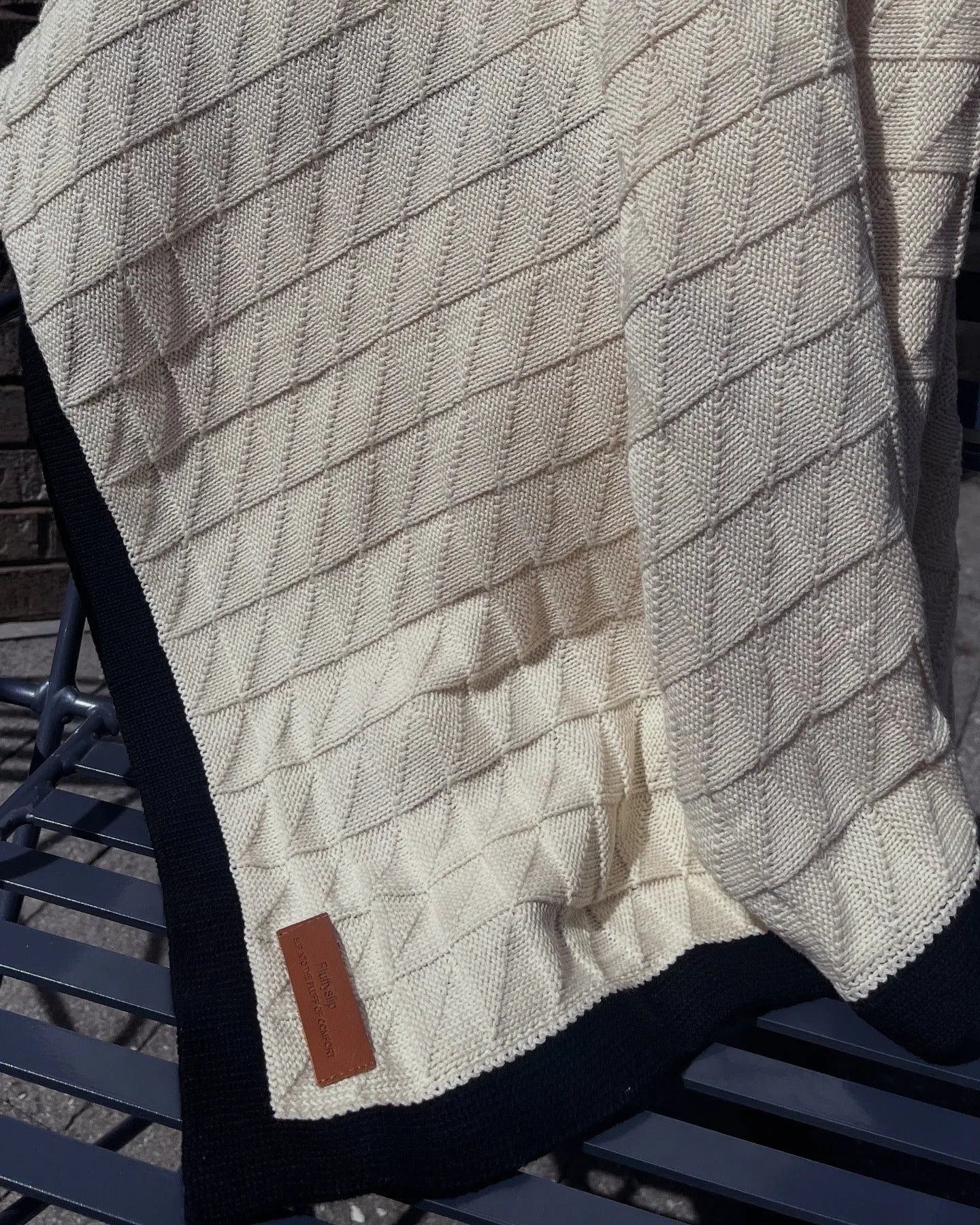 Featuring a structured mini square tile pattern with a bold solid border, it adds subtle texture and contrast to your space — whether folded at the end of your bed, draped over the couch, or used as a cozy wrap on breezy evenings.