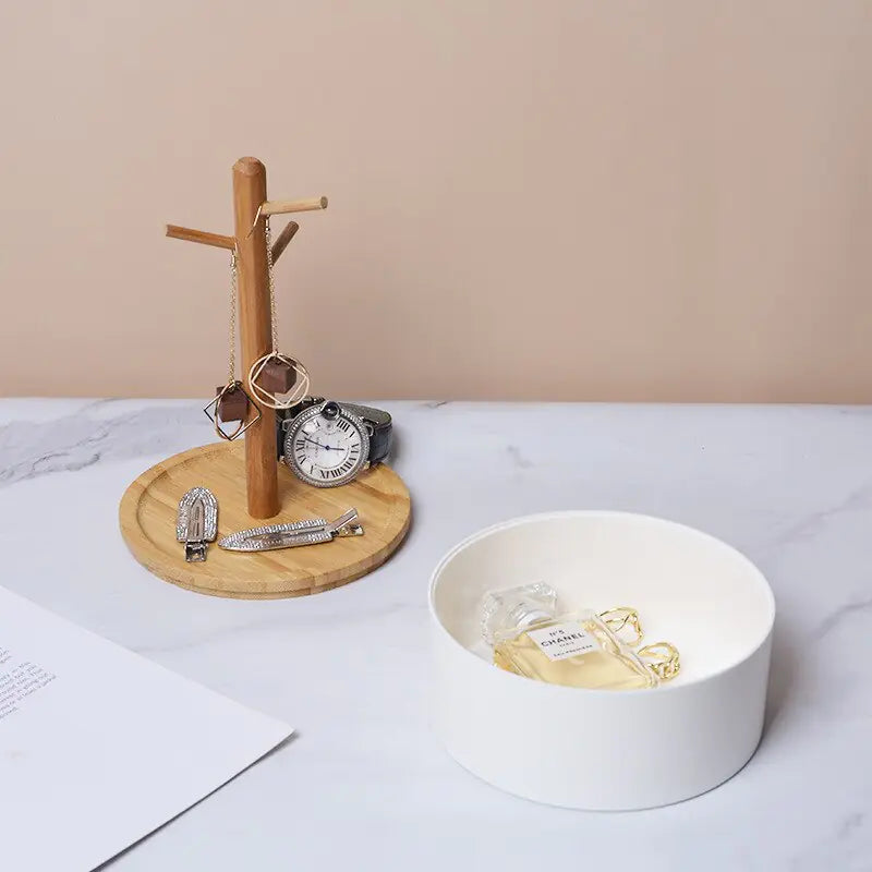 Crafted with Nordic creativity, the round box base and branch-inspired structure provide a unique storage solution. Perfect for showcasing your rings, earrings, pendants, or any cherished trinkets, this desktop shelf display rack transforms clutter into an organized masterpiece.