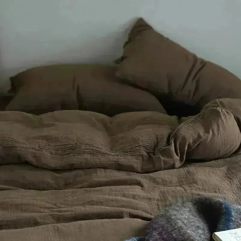 Earth Tone Wrinkled Cotton Duvet Cover Set