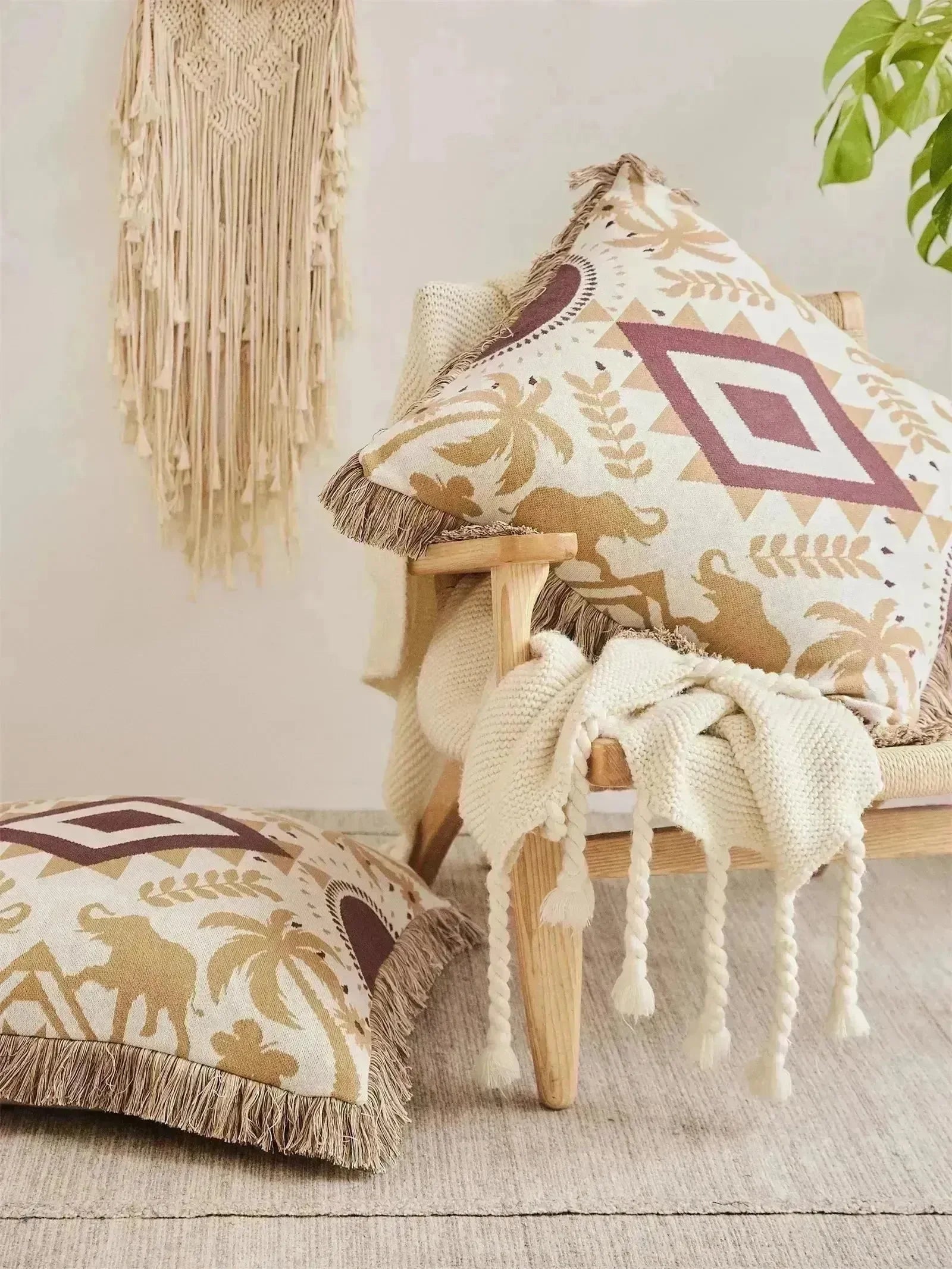 The Elephant Embrace Pillow Cover Case features intricate yarn-dyed patterns with beautiful elephants, leaves, and abstract motifs. The knitted craftsmanship ensures durability while maintaining a soft, comfortable texture that lasts. Made from anti-pilling fabric, this cover case stays fresh and smooth wash after wash, adding long-lasting elegance to your space.