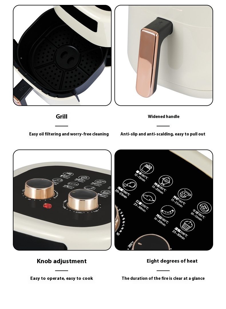 The European Standard Multi-Function Air Fryer offers you a healthier way to enjoy your favorite crispy dishes. With a large 5L–6L capacity, this fryer is perfect for families or small gatherings of 2-5 people. It features an efficient hot air convection heating system and a sleek plastic body, delivering tasty meals with minimal oil.