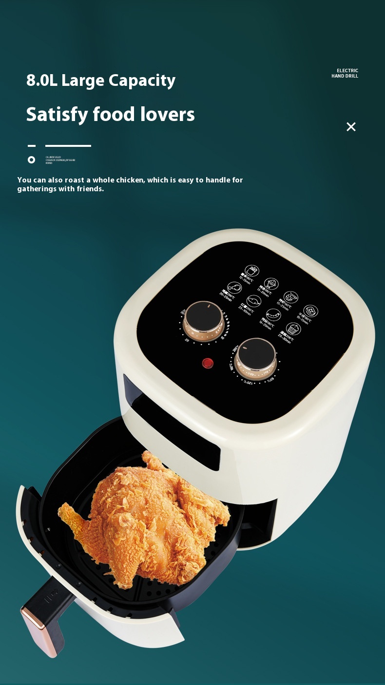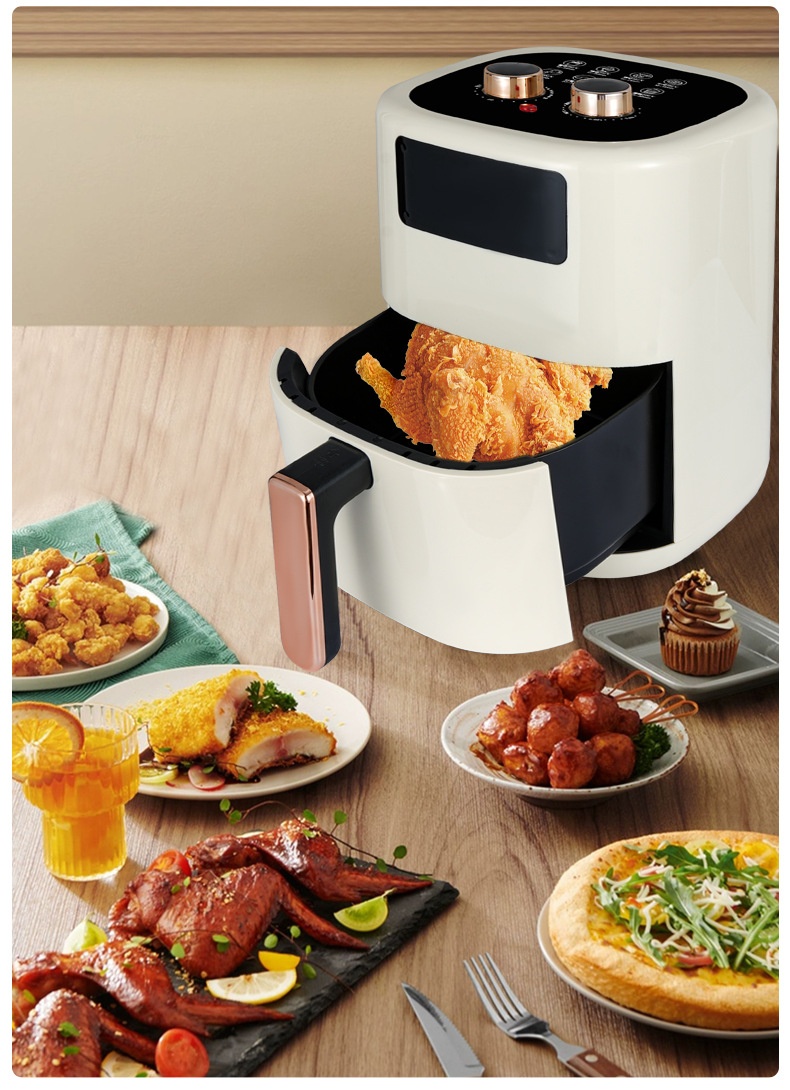 The European Standard Multi-Function Air Fryer offers you a healthier way to enjoy your favorite crispy dishes. With a large 5L–6L capacity, this fryer is perfect for families or small gatherings of 2-5 people. It features an efficient hot air convection heating system and a sleek plastic body, delivering tasty meals with minimal oil.
