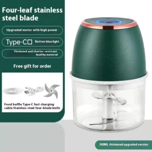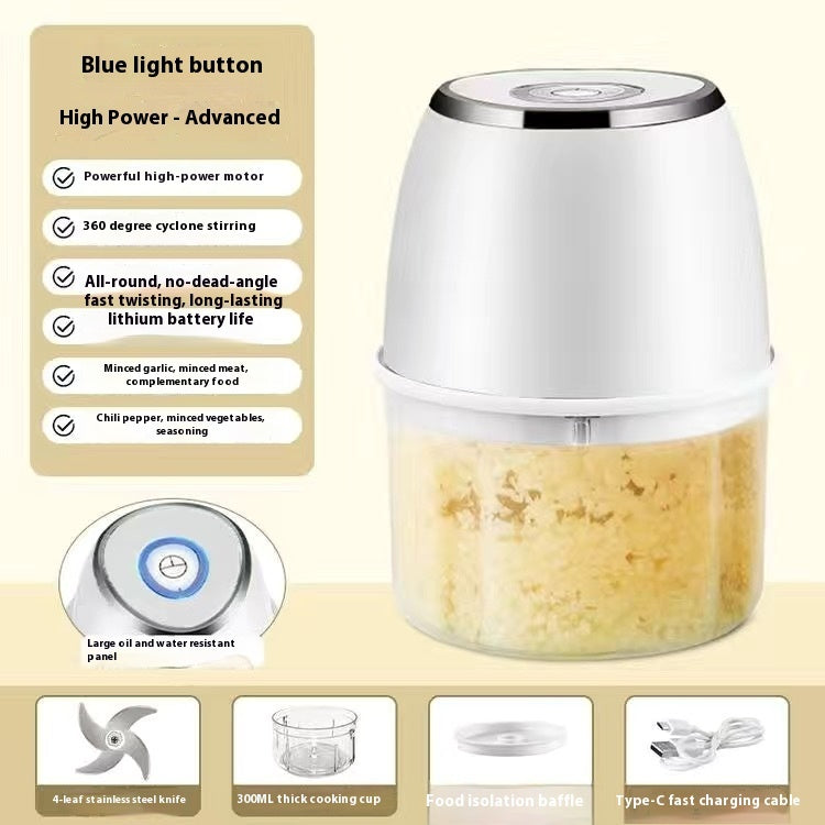 The Household Garlic Press Grinder is a sleek, modern kitchen tool designed for easy garlic grinding. With a 30W power rating and a 5V electric operation, it efficiently processes garlic and other ingredients. The grinder features a 300ML thick cooking cup, a 4-leaf stainless steel knife, and a food isolation barrier for convenient use. It comes with a charging cable for rechargeable convenience and is made from durable PP material.