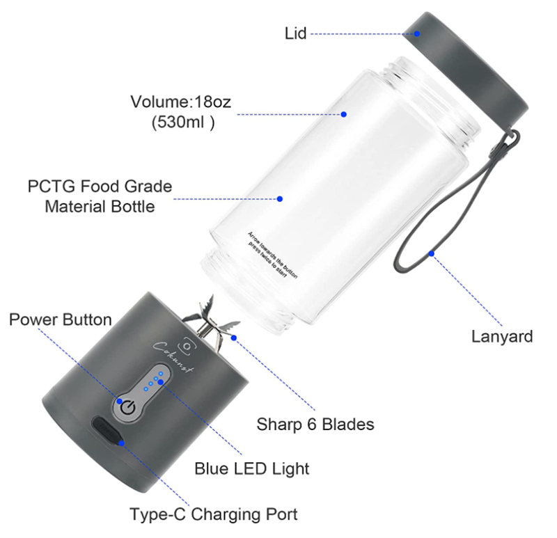 • 530ml Capacity: Perfect for single-serve juices or smoothies.