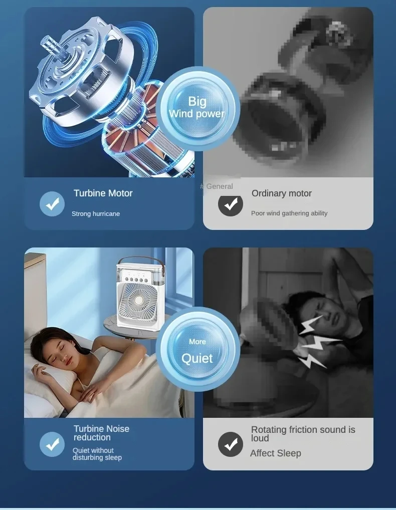 Portable Humidifier Fan Air Conditioner Household Small Air Cooler Hydrocooling Portable Air Adjustment for Office 3 Speed Fan