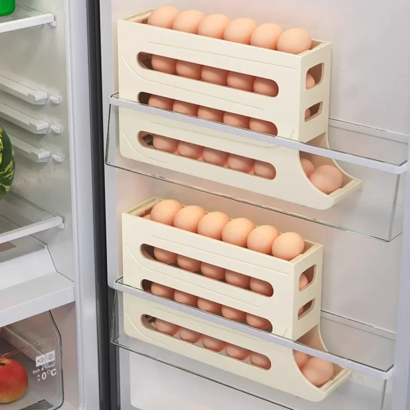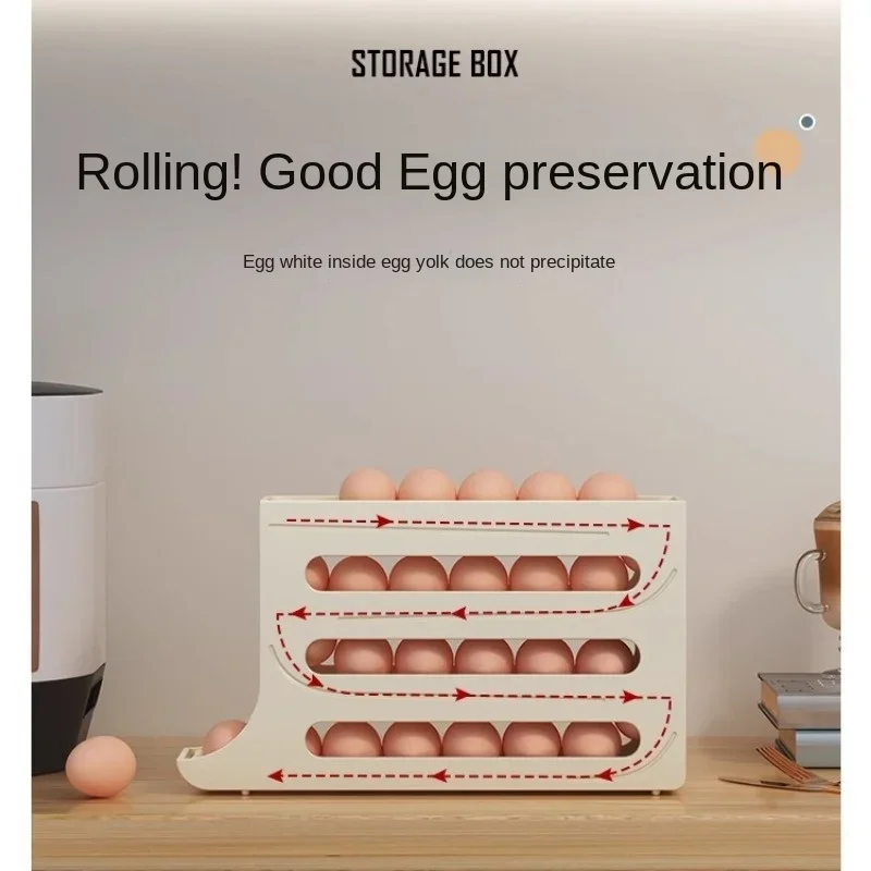 Sliding Egg Storage Container Convenient Automatic Rolling Holder Storage Box Fridge Kitchen Space Saver with Shockproof Design