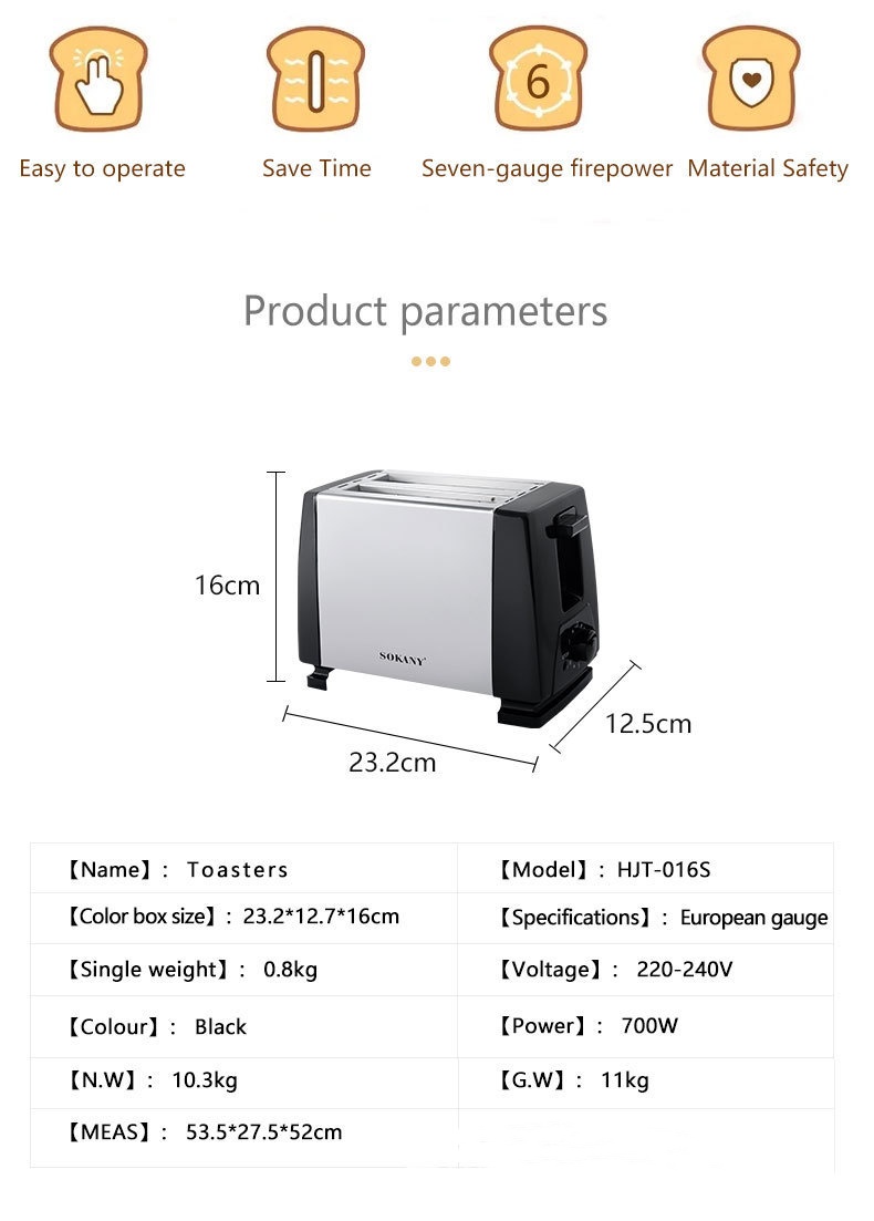Power: 600W for efficient toasting.