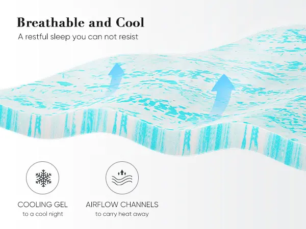 • Our mattress topper is skillfully designed using a cooling gel bead injection and vortex technology, precisely engineered to reduce heat and enhance airflow. This thoughtful design ensures that individuals experience a refreshing coolness and superior air permeability, promoting a delightful sensation of freshness.