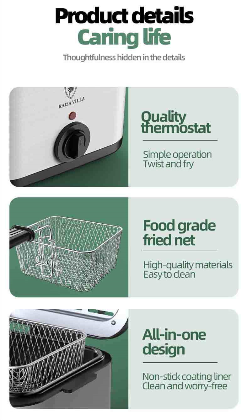 • Powerful 1000W Heating – Quick and efficient frying performance